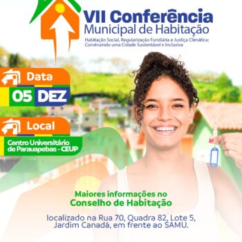 Com o tema “Habitação Social, Regularização Fundiária e Justiça Climática: Construindo uma Cidade Sustentável e Inclusiva”, evento será realizado no dia 5 de dezembro. A Prefeitura de Parauapebas, por meio da Secretaria Municipal de Habitação (Sehab), informa que estão abertas as inscrições para a VII Conferência Municipal de Habitação de Interesse Social e Regularização Fundiária,