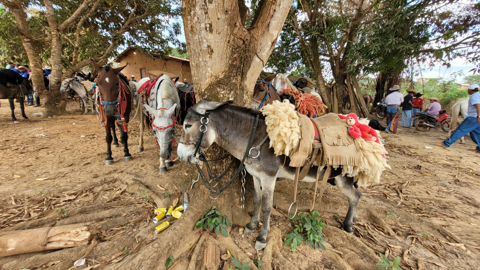 Maninho, que trabalha em um caminhão boiadeiro, também veio da PA Rio Branco e levou para a cavalgada o mini-boi “Boneco” e o boi “Professor”. Os animais são tão mansos que fazem a alegria da criançada. “Eles se comportam bem nas cavalgadas, cuido bem deles. O Boneco nasceu na minha roça e o Professor já está com a gente há uns 10 anos”, disse, orgulhoso, enquanto terminava de arrumar os bois.