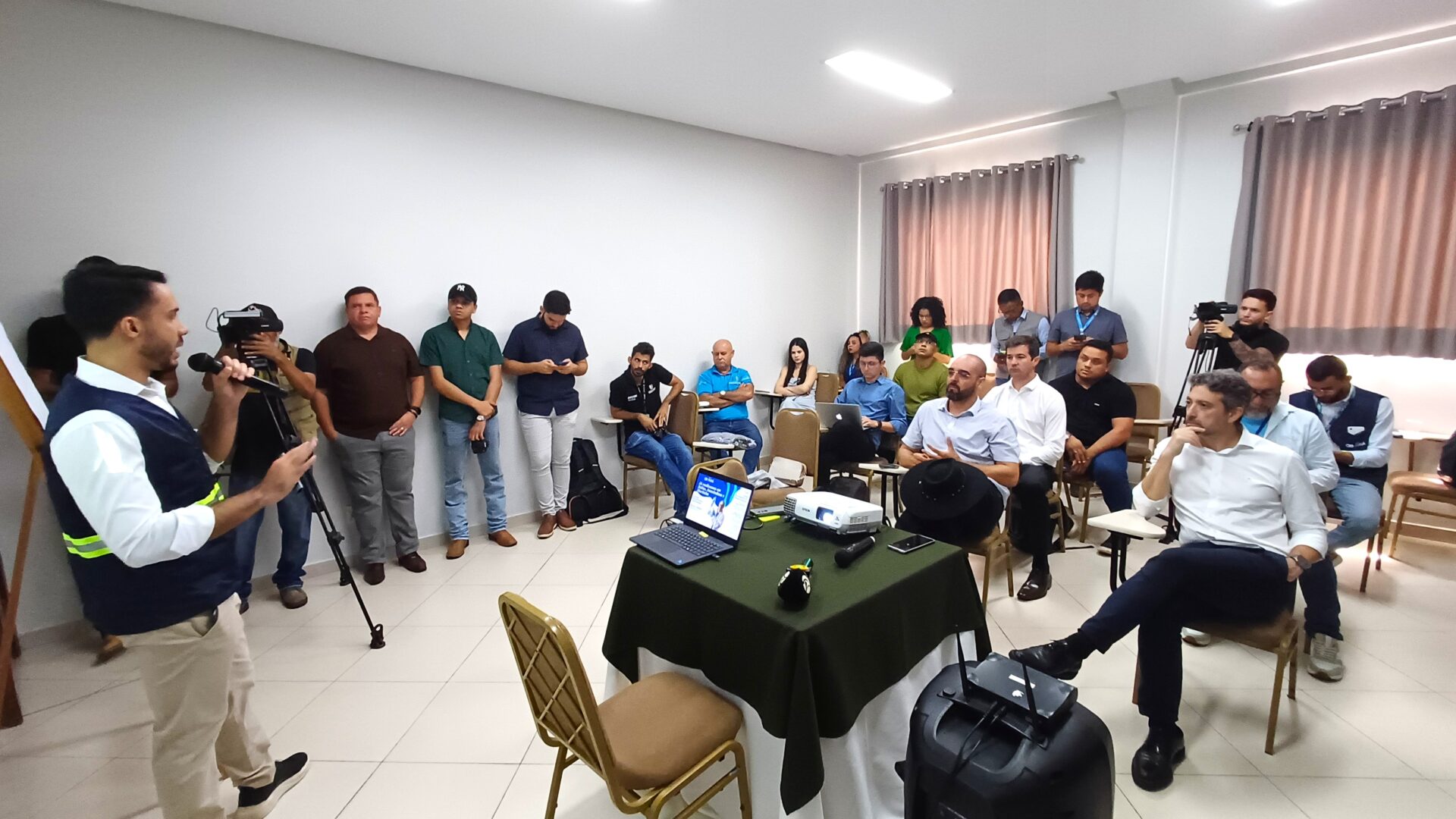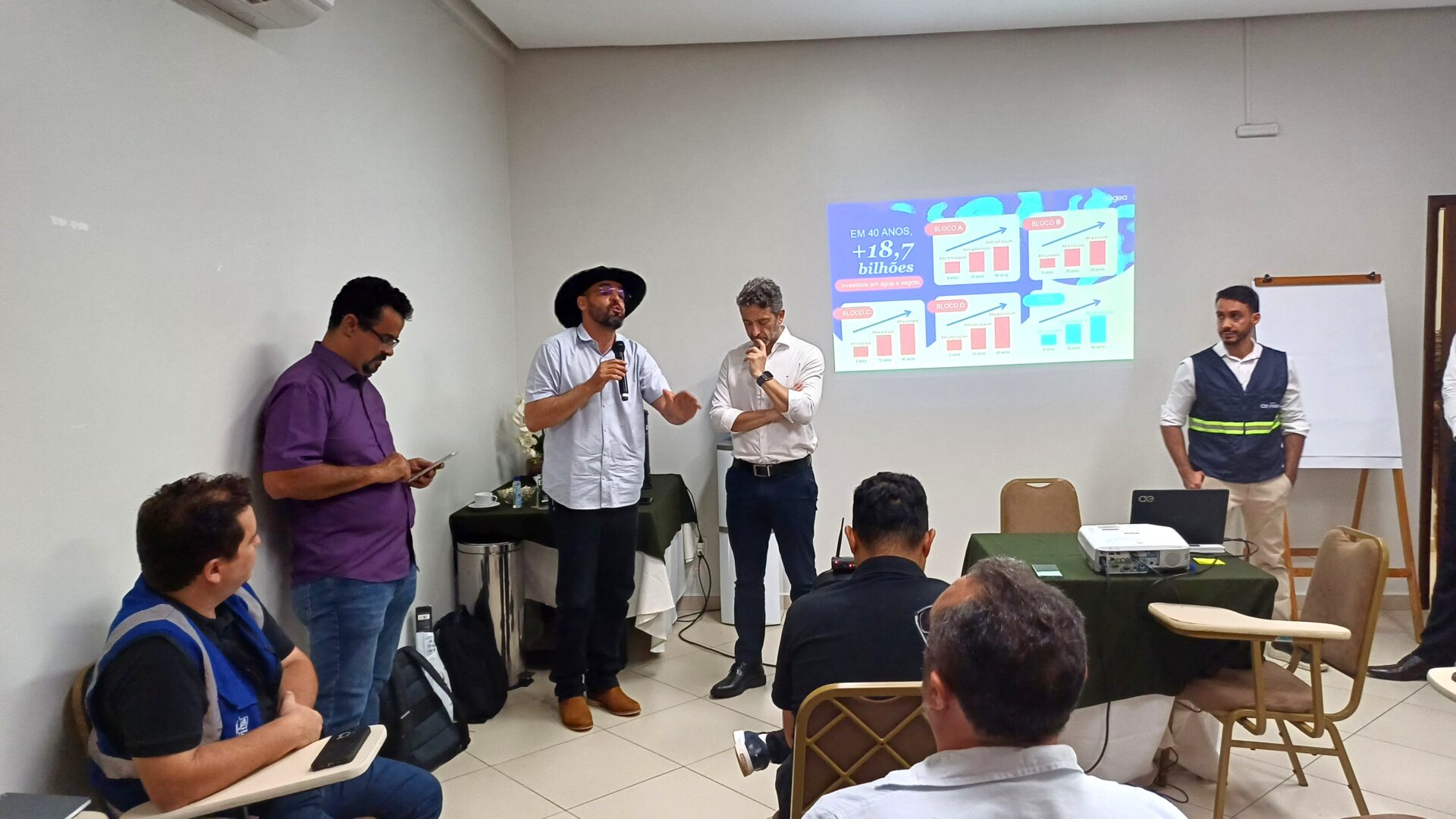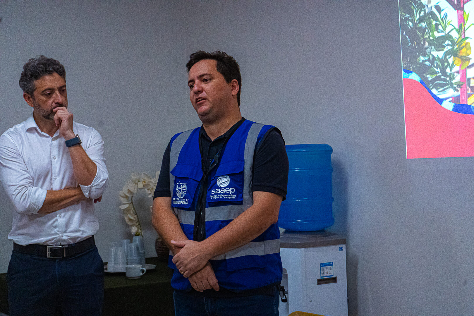 Participaram da coletiva os representantes da concessionária André Facó, diretor-presidente da Águas do Pará; Valmir Pereira, gerente executivo; e Elen Néris, gerente de Comunicação. O encontro também contou com a presença do prefeito Aurélio Goiano, acompanhado do chefe de gabinete, Genésio Filho, Bariloche Silva, titular da Assessoria de Comunicação (Ascom), além da equipe do Serviço Autônomo de Água e Esgoto de Parauapebas (Saaep), comandada por Erikson Nunes.