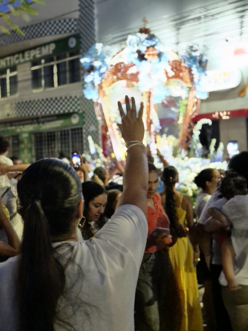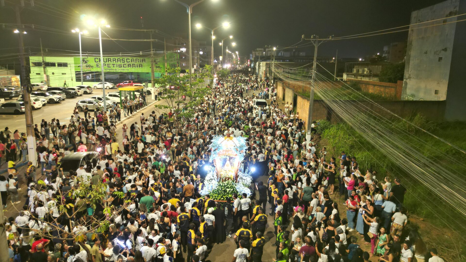 Entre fé, lágrimas e sorrisos, os fiéis receberam um banho de perfume de rosas espalhados por um drone. A imagem de Nossa Senhora de Nazaré também desceu de drone, encantando os fiéis em um dos momentos mais simbólicos da procissão. O encerramento foi marcado por um show pirotécnico, que iluminou o céu da cidade em homenagem à Rainha da Amazônia.