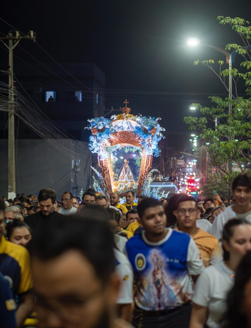 O Círio 2025 reuniu milhares de fiéis pelas ruas de Parauapebas, em uma das maiores manifestações de fé e devoção do município. Com o tema “Maria, sinal de esperança”, a procissão saiu da Igreja São Sebastião e seguiu em direção à Igreja Nossa Senhora de Nazaré, no bairro Parque dos Carajás, conduzida por uma berlinda puxada por 160 metros de corda, símbolo do sacrifício e da gratidão dos devotos.