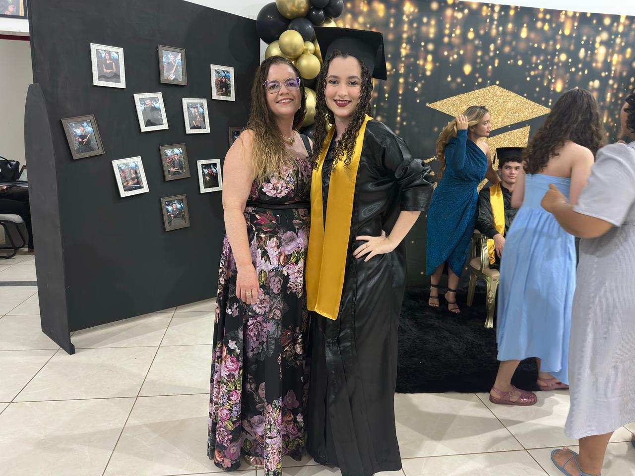 Em um dos momentos mais emocionantes da noite, os formandos da turma da professora Ieda Gracia da Silva Cardozo foram recebidos sob aplausos, acompanhados de seus paraninfos.