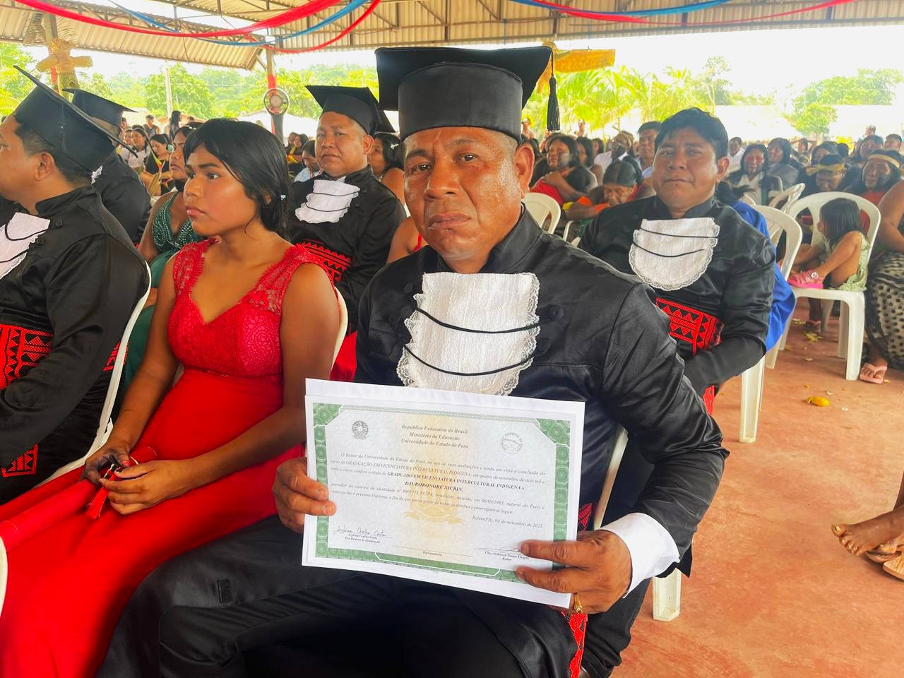 A manhã desta terça-feira, 4, foi marcada por emoção, celebração e orgulho na aldeia Xikrin do Kateté, em Parauapebas. O povo Xikrin viveu um momento histórico com a formatura da primeira turma do curso de Licenciatura Intercultural Indígena, promovido pela Universidade do Estado do Pará (UEPA) em parceria com a Prefeitura de Parauapebas, por meio da Secretaria Municipal de Educação (Semed).