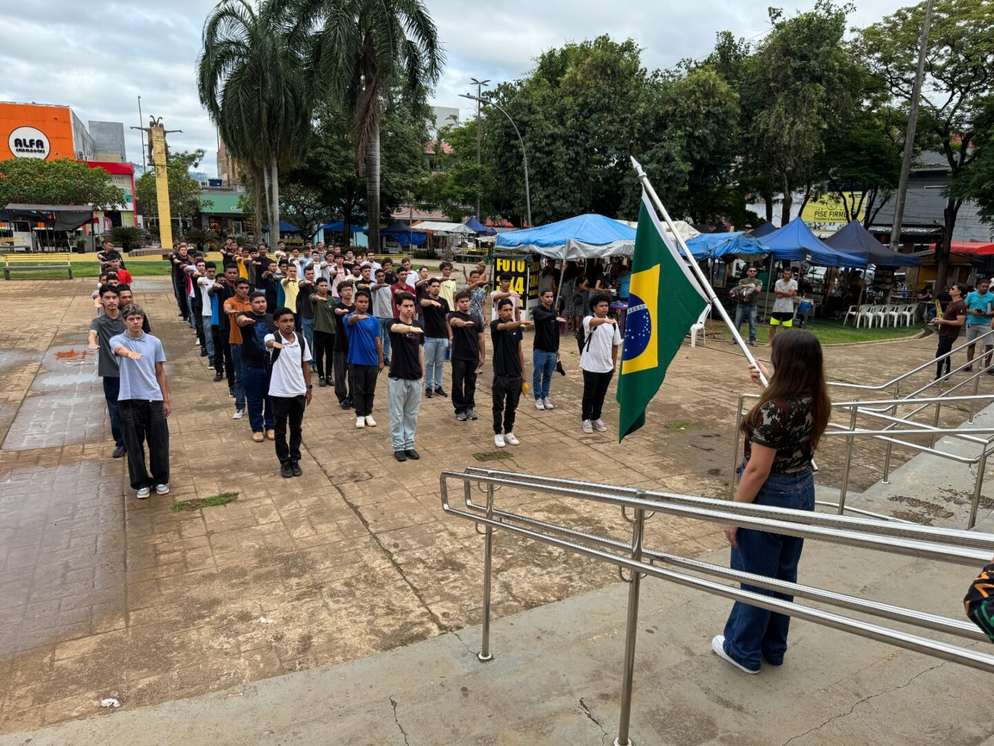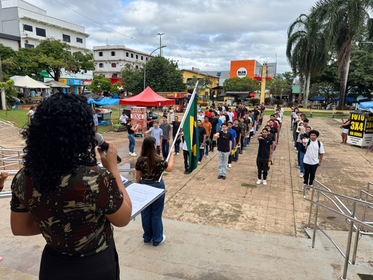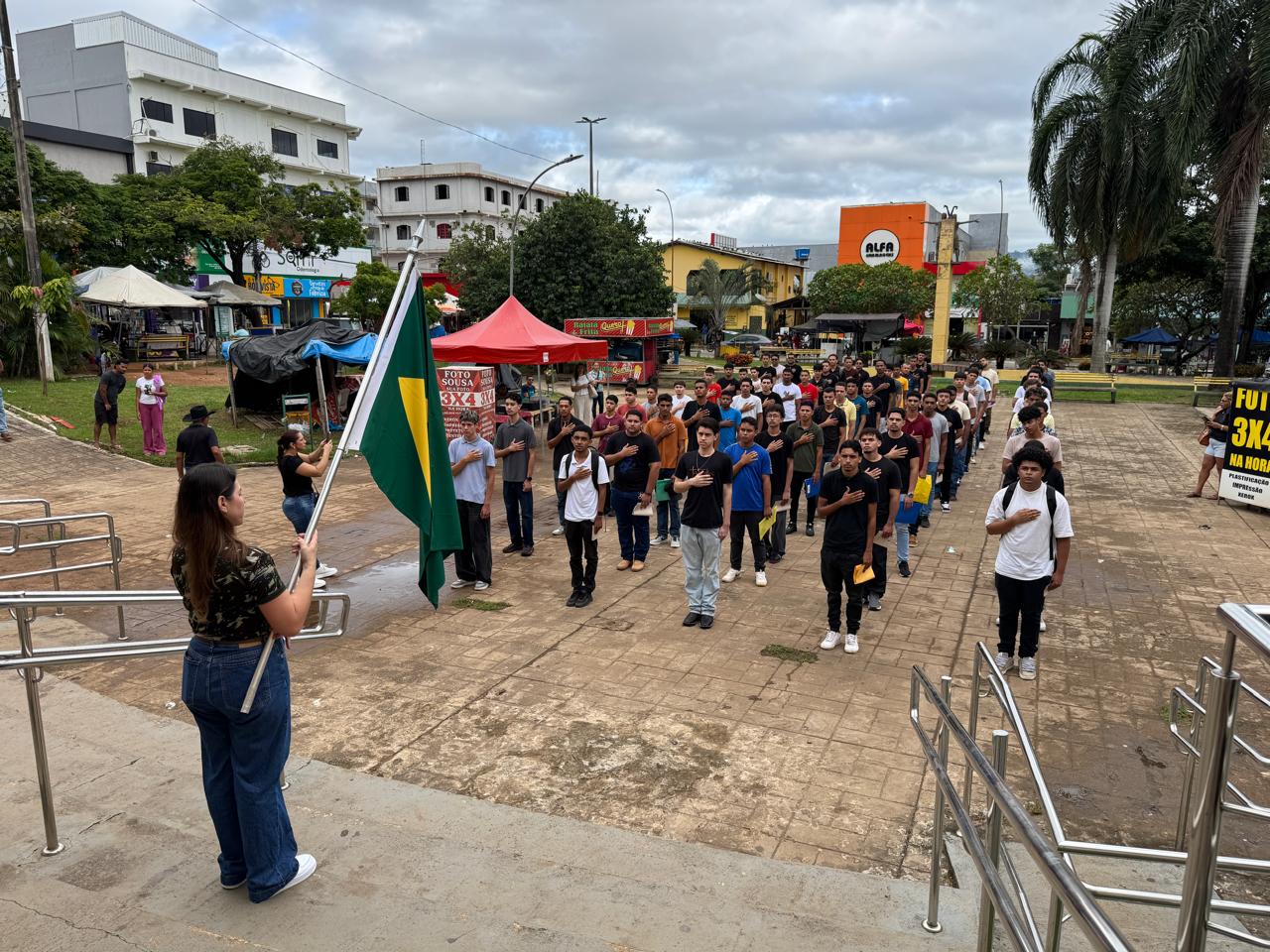 A Prefeitura de Parauapebas, por meio da Secretaria Municipal de Segurança Institucional e Defesa do Cidadão (Semsi), realizou, na manhã desta sexta-feira, 17, o juramento à bandeira de 75 jovens no Serviço de Atendimento ao Cidadão (SAC), localizado no bairro Rio Verde. O momento cívico marca uma etapa importante na vida dos jovens que cumprem com o dever do alistamento militar obrigatório.