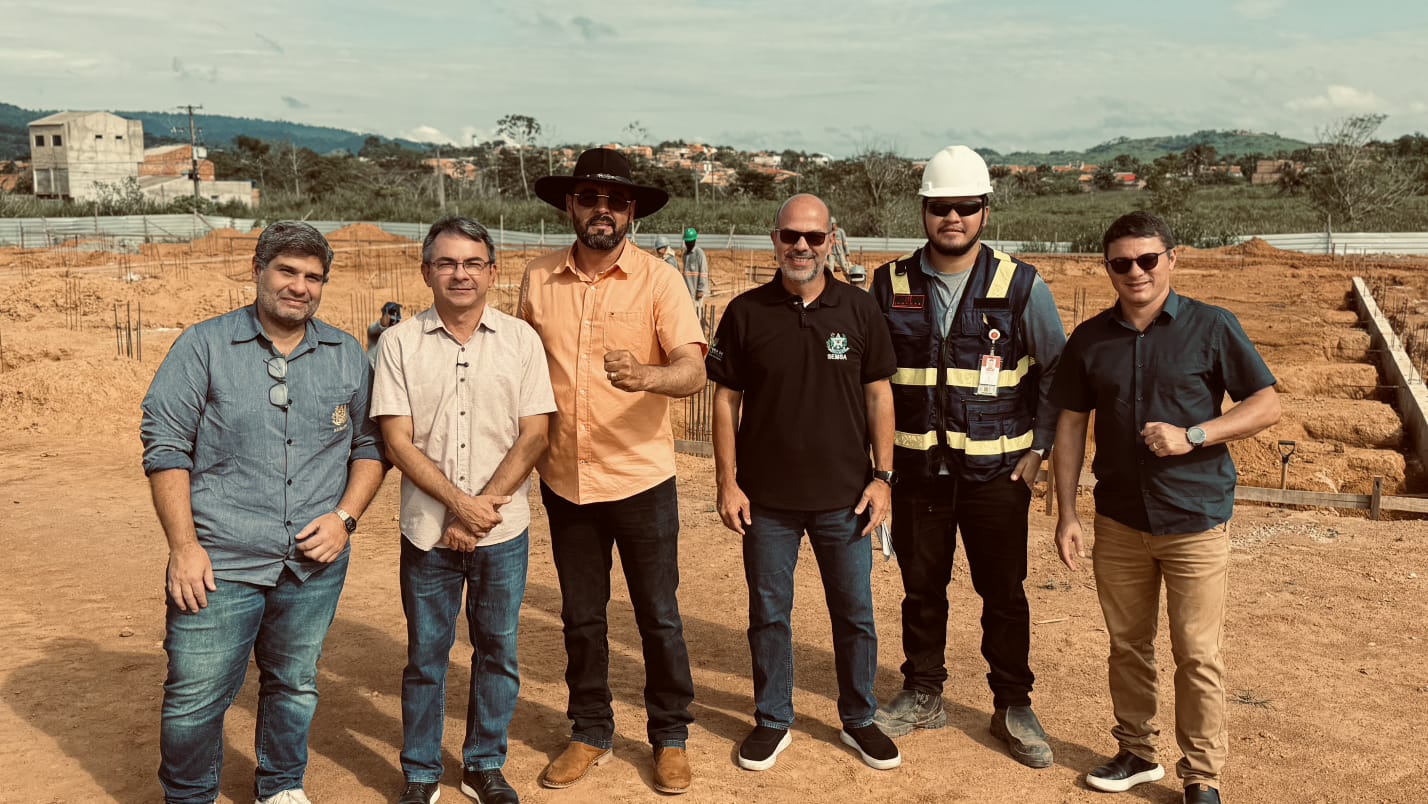 Luiz Veloso, secretário de Saúde do município, Aurélio Goiano, Roginaldo Rocha, secretário de Obras e equipe de engenharia estiveram na obra nesta quarta-feira, 7, para vistoriar de perto a construção da unidade.