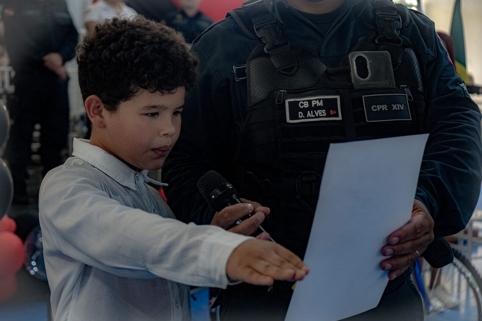 “São alunos do quinto ano que participam durante o semestre de várias formações com os policiais militares. Principalmente demonstrando a importância de dizer não às drogas, mostrando para eles o caminho certo e dizer não para o caminho errado. Essa parceria funciona há muito tempo e nós só temos gratidão por todo esse trabalho que a Polícia Militar vem desenvolvendo nas nossas escolas”, afirmou a secretária municipal de Educação, Maura Paulino.