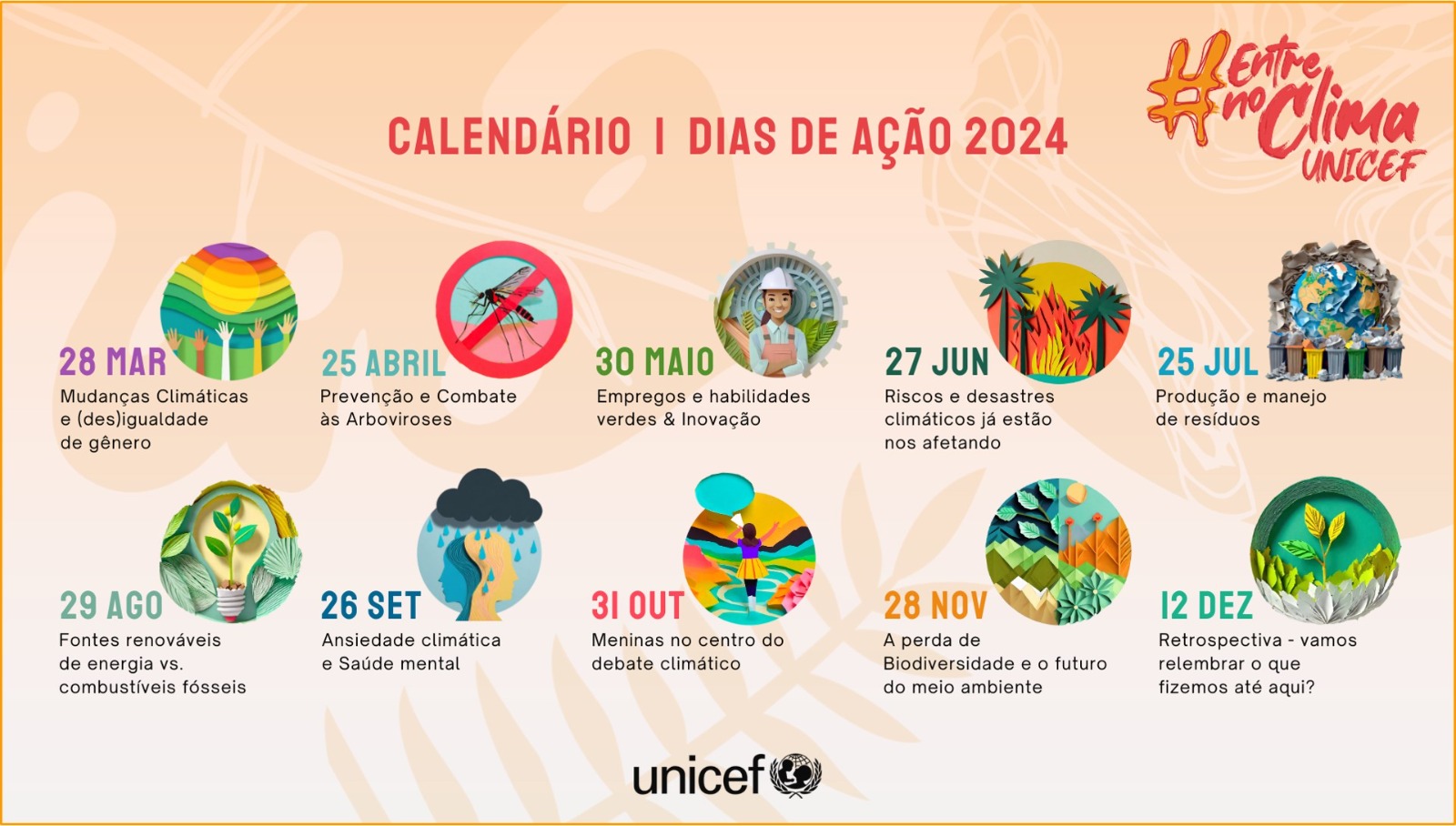 Durante o evento, serão apresentadas as orientações sobre como cada município poderá desenvolver e divulgar suas ações. O UNICEF reforçará também o papel dos mobilizadores locais e dos NUCAs na construção de soluções criativas e na ampliação da voz das juventudes nas pautas ambientais.
