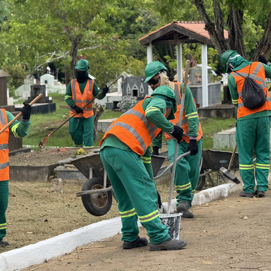 Ao longo da última semana, equipes da Semurb intensificaram os serviços de poda de árvores, varrição, roçagem, revitalização de meios-fios, pintura, limpeza das calçadas e áreas internas. Todo o trabalho foi planejado para assegurar que os cemitérios estejam limpos, organizados e seguros no feriado de Finados, quando a expectativa é receber mais de 15 mil visitantes.