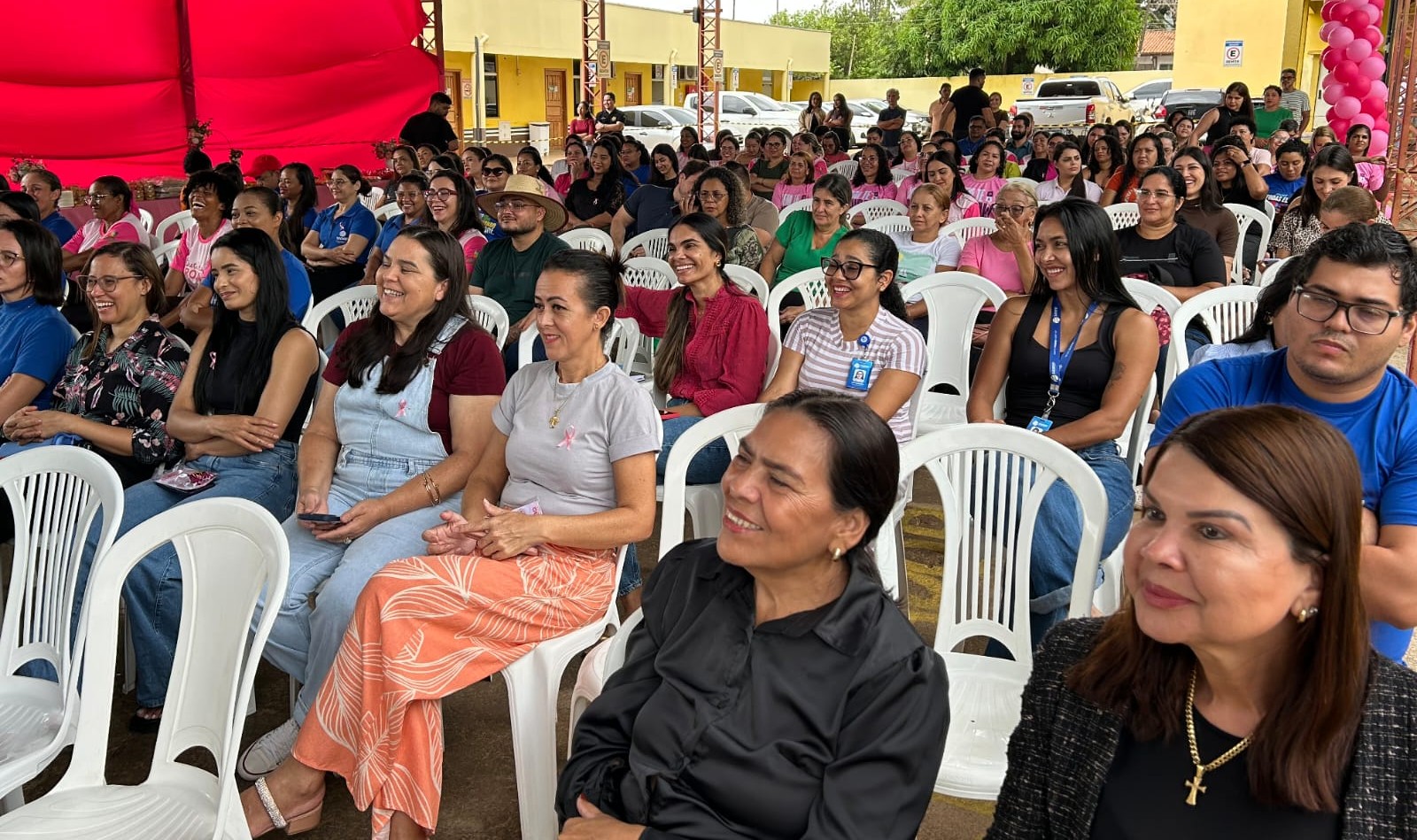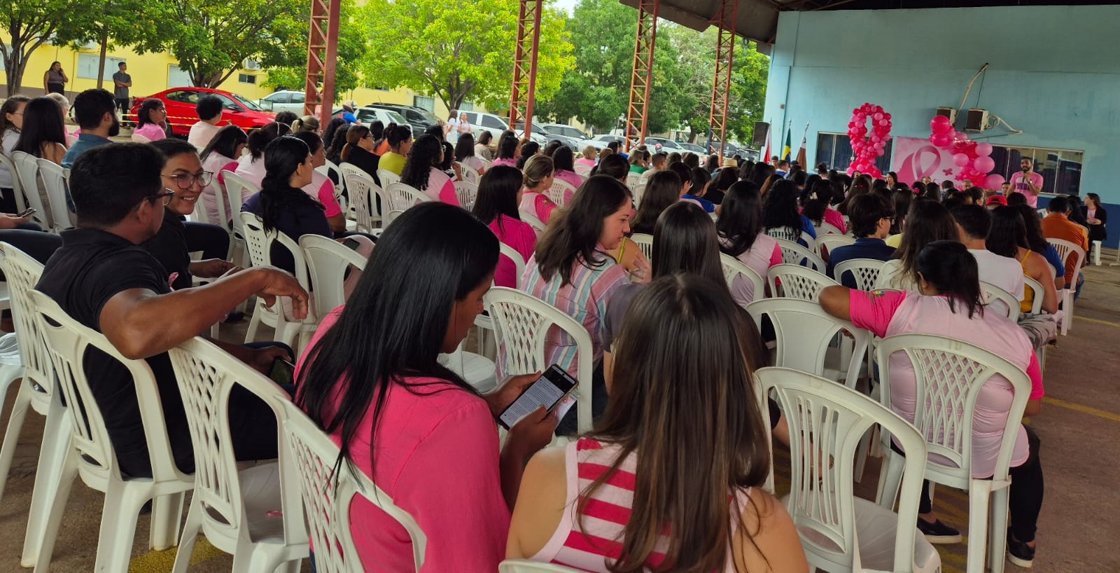 A Prefeitura de Parauapebas, por meio da Secretaria Municipal da Mulher (Semmu) e da Secretaria Municipal de Obras (Semob), com apoio de secretarias e órgãos parceiros, realizou nesta terça-feira, 14 de outubro, às 8h30, na Semob, rua Rio Dourado, s/n, bairro Beira Rio, uma programação especial alusiva ao Outubro Rosa.