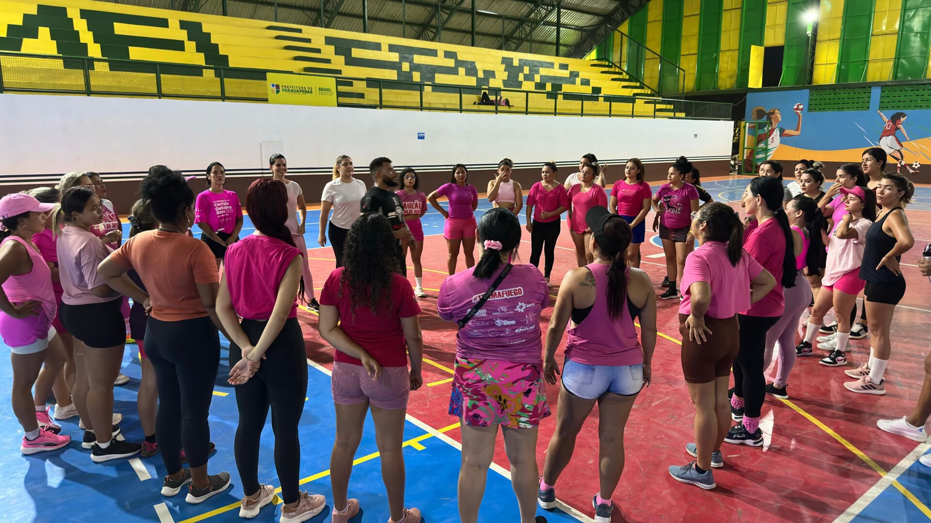 Em alusão à campanha Outubro Rosa, a Prefeitura Municipal de Parauapebas, por meio da Secretaria Municipal de Esporte e Lazer (Semel), realizou no último domingo, 26, o Aulão do Outubro Rosa, no Ginásio Poliesportivo Islander Souza, no bairro Beira Rio. O evento reuniu mais de 60 mulheres em uma noite voltada para a saúde, bem-estar e conscientização sobre a prevenção do câncer de mama.